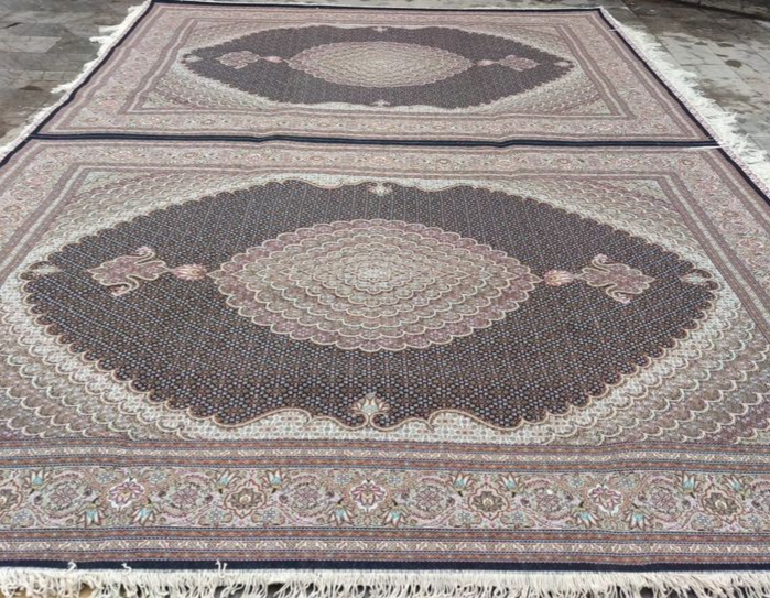 خانهفرش و تابلو فرشفرش دستباف تبریز جفت 9 متری ریز ماهی ۴۰ رج متن سرمه ای