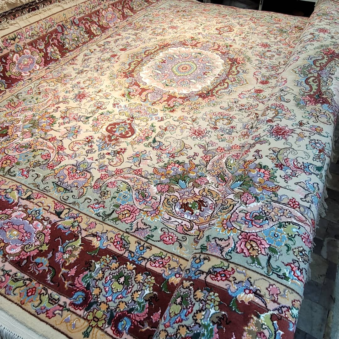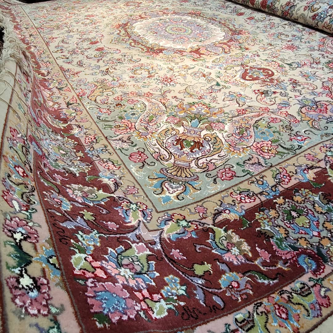 جنس نخ مرینوس نقشه خطیبی لچک گلدانی طرح و رنگ عالی
